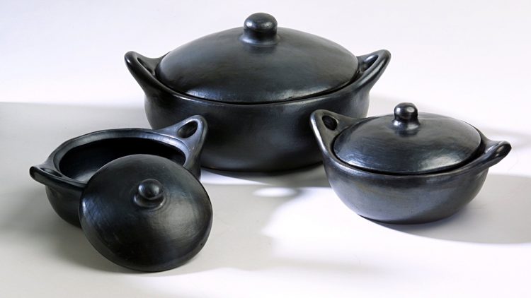 The cookware, says Nelson, is handmade in small village named La Chamba in Columbia. The clay, which contains mica that allows it to withstand heat, is mined there, as there is an abundance of it in the village. Nelson says that almost everyone in the village focuses on the creation of this cookware, from mining to shaping. The pieces are crafted inside the homes, dried outside on porches, patios and yards and fired in small ovens, which creates its black color. In some instances, certain families specialize in certain sizes or shapes. While the goods are distinct, artisan and authentic, they are strong enough to be used on almost any cooking surface while sustaining their all-natural and unglazed state, says Nelson.