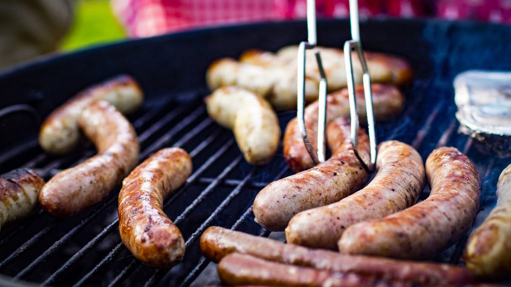 “It keeps the sausage from drying out and ensures it’s nice and tender,” Bourgeois says. “Most of it renders and drips out on the barbecue pit or in the frying pan.”